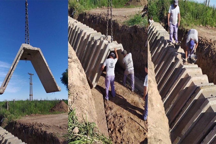 En el cruce de los caminos comunales 6 y 18 se realizaron trabajos de recambio de tubos de alcantarillas por estructuras premoldeadas.