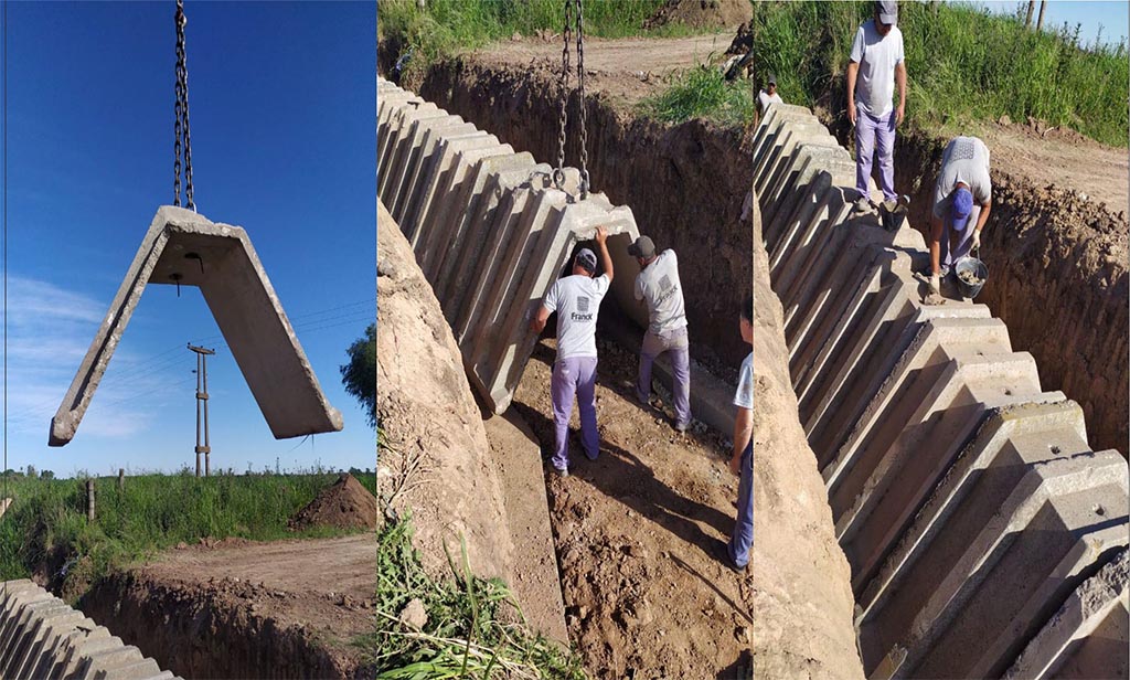La Comuna de Franck informó que su personal se encuentra trabajando en el recambio de tubos de alcantarilla por módulos en la intersección de los caminos Nº 6 y 18, con el objetivo de mejorar el escurrimiento de los excedentes pluviales que se derivan por este canal -continuación de calle Moreno hacia el Este.