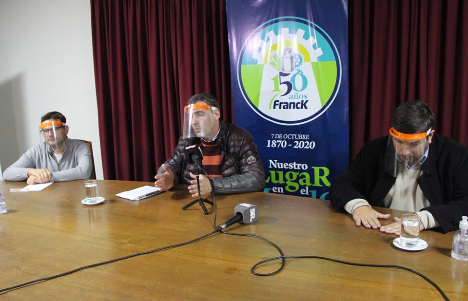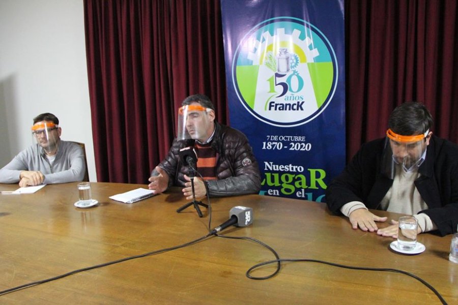 El presidente comunal Javier Enrico, junto al vicepresidente Damián Franzen y el Dir. del C.A.P.S. Dr. Dante Rubio, brindaron una conferencia de prensa para brindar precisiones sobre la confirmación de un nuevo caso de Covid y medidas a adoptar.
