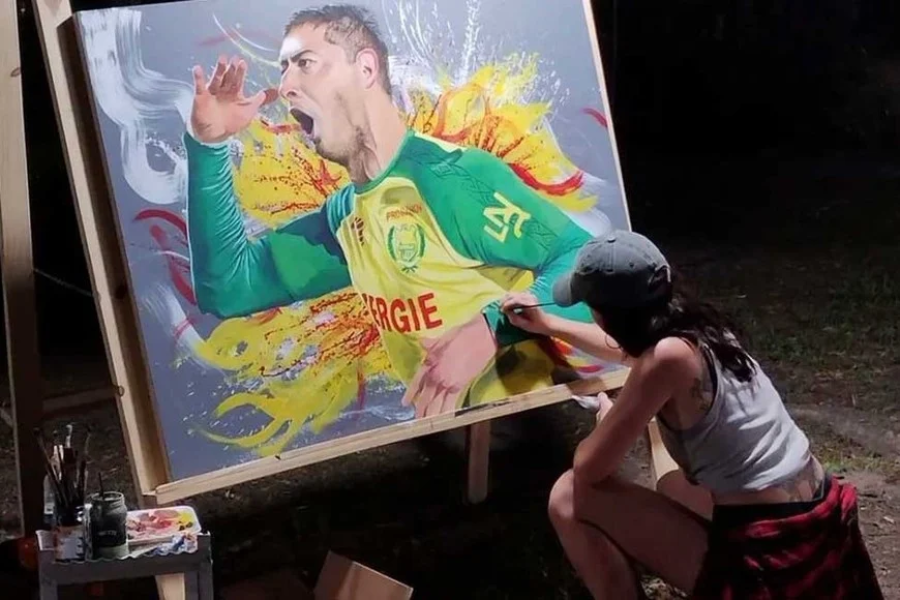 A cuatro años del trágico accidente aéreo que le costara la vida, los homenajes y reconocimientos a Emiliano Sala no se detienen. Pero el último de ellos realizado por la artista plástica y muralista, Nieves Ebeling, es especial. Se trata del primer homenaje realizado por una artista de Progreso, a la figura deportiva más importante en la historia de la localidad del Departamento Las Colonias.