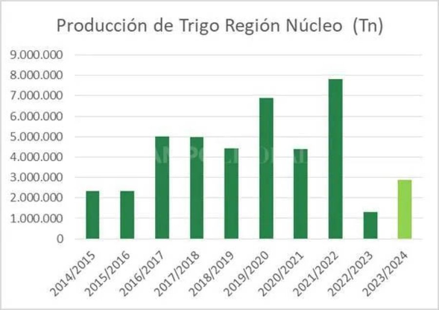 Así, va finalizando una campaña muy difícil pero con final superador. Finalmente, la región producirá más del doble de trigo que hace un año atrás (1,3 Mt). Si bien queda muy por lejos de las mayores producciones de los últimos 10 años como la 2019/2020 con 6,9 Mt o la 2021/2022 con 7,8 Mt, los mejores resultados traen un alivio que llega en un momento crucial para los productores regionales.