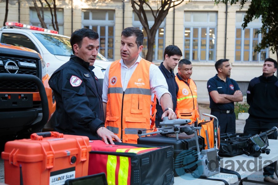 Sobre el equipo de rescate, el funcionario santafesino precisó que se adquirió por “una decisión de nuestro gobernador y del ministro de Gobierno, Fabián Bastia, quienes dispusieron de los fondos: cien millones de pesos; porque suma al recurso humano calificado que tenemos en los bomberos voluntarios”. El equipamiento “consta de un kit de localización con un carretel de noventa metros que permite, con cámara en el extremo distal, visualizar lugares de difícil acceso. Y sumamos un dron con cámara térmica a los que ya están trabajando allá”.
